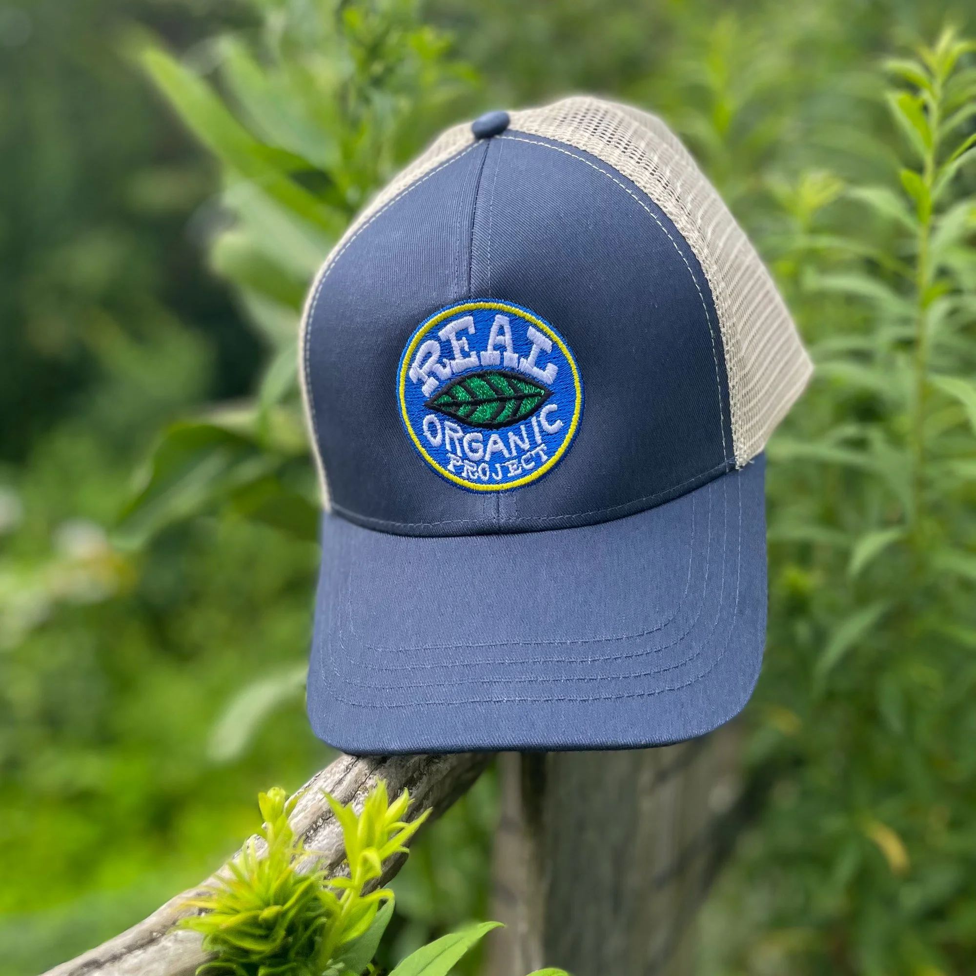 Featuring an embroidered Real Organic Project patch, our trucker hats are made with organic cotton and recycled polyester mesh. Get one here ➔