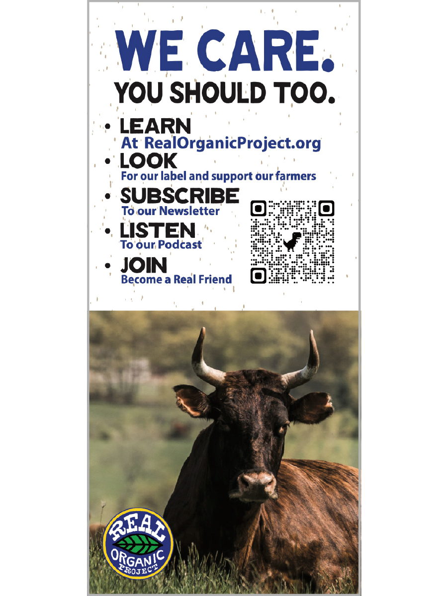 The Real Organic Project rack card showcases the problems found on usda-certified industrial “organic”. We are happy to send our certified farmers the first 100 for free. Get them here ➔